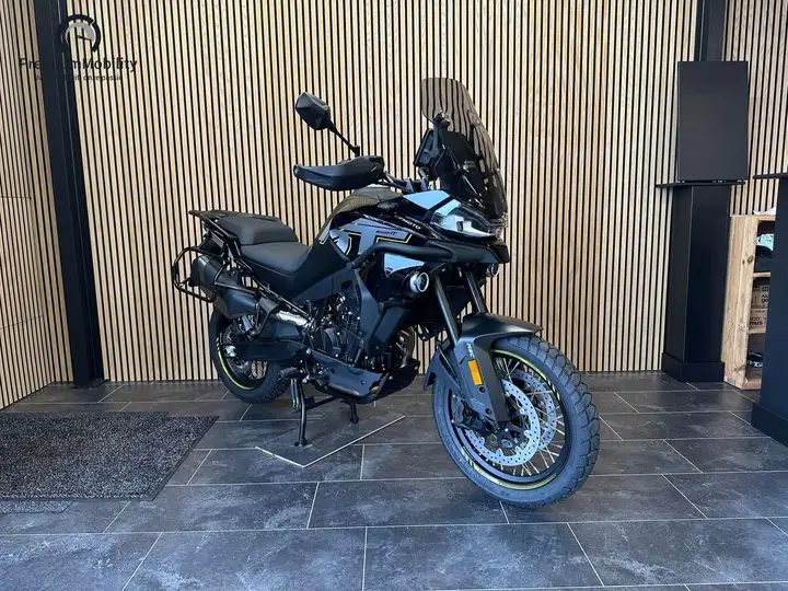 De selecteerbare 4 rijmodi Sport/Rain/Off-road/All-terrain, die handig op het multifunctionele stuur zijn geplaatst, kunnen ook worden gebruikt om de bandenspanning te controleren via het menu, zodat rijders hun ervaring kunnen aanpassen aan hun voorkeuren en de wegomstandigheden. De bochten-ABS-functie voegt een extra laag veiligheid en plezier toe, zodat rijders met vertrouwen door uitdagend terrein kunnen navigeren. Voor langeafstandsritten zorgt de Cruise Control-functie voor een comfortabele en moeiteloze ervaring, zodat rijders snelheden tot 120 km/u kunnen aanhouden. De twee optionele zijkoffers met sloten bieden 63 liter aan opbergruimte en de optionele topkoffer heeft 6 liter aan opbergruimte.