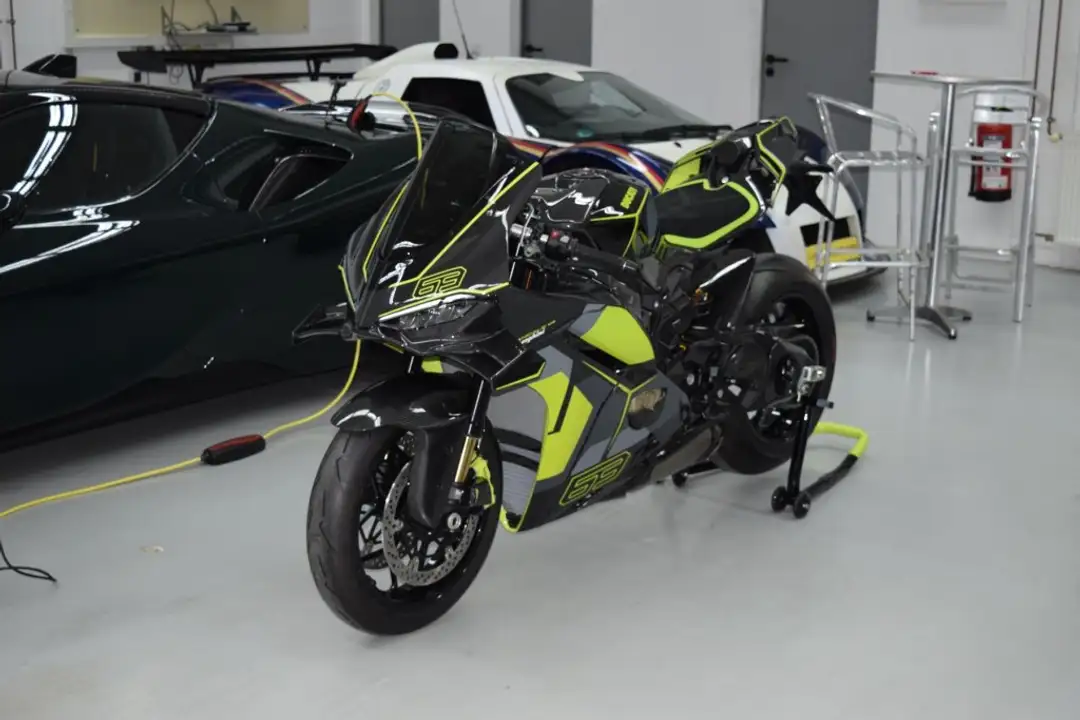NEU! Ohne ZulassungDUCATI Panigale V4 LamborghiniThe Art of UnexpectedEine nummerierte Sonderedition, limitiert auf 630 Exemplare. Inspiriert von dem Lamborghini Revuelto ad Personam ist dieses Sammlermodell das dritte Kapitel der Zusammenarbeit zwischen den beiden globalen Markenbotschaftern des Made in Italy. Vollständig ausgestattet mit einer Sonderlackierung, Carbon-Elementen, Trockenkupplung und Akrapovi?-Schalldämpfer ? das ist die neue Panigale V4 Lamborghini. Inspiriert vom Lamborghini Revuelto ad PersonamDas Ergebnis der Zusammenarbeit zwischen den Designzentren von Ducati und Lamborghini: Die Lackierung kombiniert einen schwarzen Grundton mit sichtbarem Carbonfaser-Twill-Gewebe. Die Akzente setzen Details in Scandal Green, Telesto Grey und Acheso Grey.